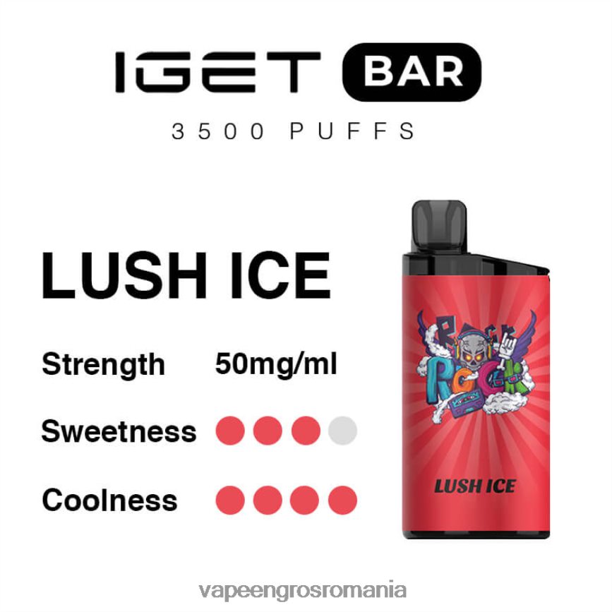 iget bar vape este un vape de unică folosință realizat din oțel inoxidabil 304 ușor pentru o experiență confortabilă de mână. se mândrește cu o varietate de arome încântătoare și cu o capacitate generoasă de 3500 de pufuri, făcându-l o opțiune de încredere pentru atunci când aveți nevoie. Lush vape este o aromă care combină în mod obișnuit pepenele suculent cu o notă rece de mentol, creând o experiență de vaping răcoritoare și fructată.